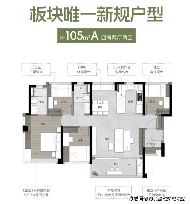 约103㎡户型为四房两厅两卫,带有独立入户花园和约7米通铺阳台,270°全景采光大主卧让主人尽享尊贵。约105㎡户型同样是四房两厅两卫,南北对流,独立入户花园,客厅拥有约5米大宽厅,主卧带L型超7米转角飘窗,舒适度满分。