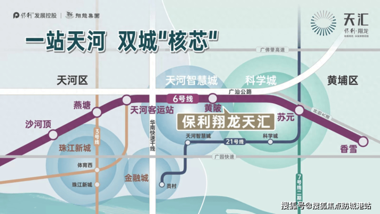 第三轴线:项目坐落于广州第三轴线上,地处天河智慧城与黄埔科学城的交汇中心。