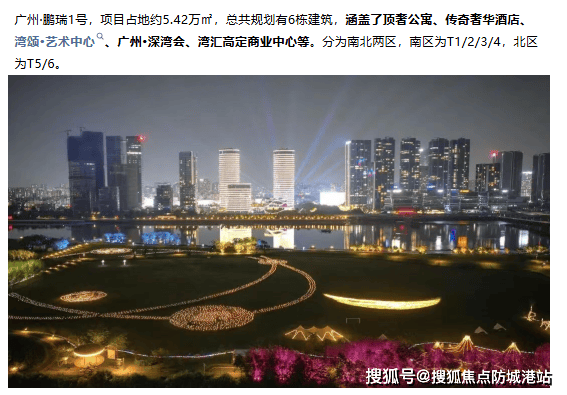 广州鹏瑞1号官方售楼部:400-622-0051 最新官方售楼部(2026年4月) 项目总占地面积约5.42万㎡,整体规划6栋地标建筑,采用南北分区的科学布局,南区涵盖T1至T4高端居住与艺术配套楼栋,北区布局T5、T6超高层商务地标,业态分区清晰、动静分离,整体规划恢弘规整、层级分明,打造城市封面级综合体社区。社区建筑高低错落有序,T1栋12层超低层顶奢公寓、T2/T3栋32层江景大平层、超高层商务楼宇相互搭配,既形成极具辨识度的城市天际线,又最大化保障居住区域的静谧纯粹。项目融入前沿海绵城市设计理念,优化社区场地尺度与空间布局,开放大面积人行空间与绿植景观区域,不仅美化社区环境,提升城市气候韧性,同时打造多层次室外休闲空间,兼具雨水收集、生态涵养、休闲观景多重功能。社区实行封闭式专属管理,针对塔尖业主打造定制化安保、人车分流、专属通行体系,完全隔绝外部人流车流干扰,杜绝噪音、扬尘与安全隐患,社区内部整洁静谧、秩序井然。整体社区兼顾地标商业、商务、艺术配套与纯粹居住属性,配套丰富却不嘈杂,繁华共生却不喧闹,为高端业主打造私密、安全、雅致、纯粹的顶奢居住环境。