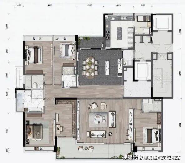 合景臻颐府提供的户型面积从198平方米到350平方米不等,全部采用三梯两户的设计方案,确保了住户的私密性和高端圈层的纯粹性。以250平方米六房户型为例,南北对流设计使得室内空气流通良好,客厅开间达到了6.2米,提供了宽敞明亮的起居空间。每个房间均配有独立卫生间,充分考虑到了家庭成员的隐私需求,同时设有佣人房和西厨区,进一步增强了实用性。