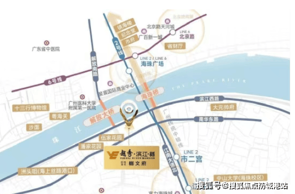 这份稀缺性,源于土地本身的禀赋。项目所在地块于2022年12月由越秀地产以约45261元/㎡的楼面价竞得,虽占地仅约4717㎡,却凝聚了开发商对产品力的极致追求。它不仅占据海珠滨江西板块这一成熟生活圈,更处于广州第一中轴线上,距广州市政府直线仅约1.9公里——江与轴在此交汇,成就不可复制的城市封面资产。