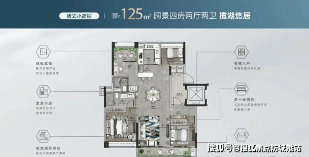 1栋、2栋、4栋:超高层产品,95㎡、125㎡、141㎡等多种户型,3梯4户或6户设计,适合注重性价比与景观视野的家庭;