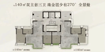 140㎡四房:中区单价9.4-10.6万/㎡,景观对标汇悦台,较中海花城湾每平省3-8万。南向四开间,阳台面宽7.2米,中西双厨设计,次卧可分合为工作室。