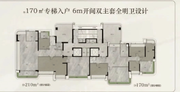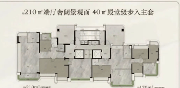 210㎡环幕四房:得房率达125%,实际单价直降1.5万/㎡,总价突破2400万,赠送面积使实际使用率超140%(相当于210㎡购入294㎡空间)。独梯独户,珠江新城天际线景观,超大客厅+多个观景阳台。