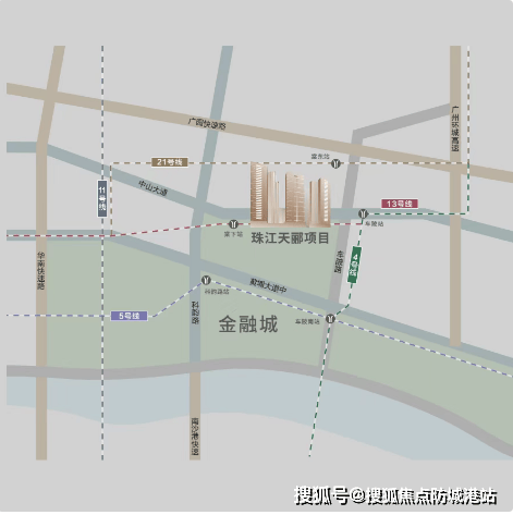 交通枢纽上,珠江天郦距离地铁13号线二期棠下站仅一步之遥(预计2023年底通车),并通过私家连廊直接连接至地铁站。未来,随着3+4+5超级交通枢纽的建成,将构建起1小时湾区资本圈,使得从珠江天郦出发到达广州各个重要节点变得极为便捷。