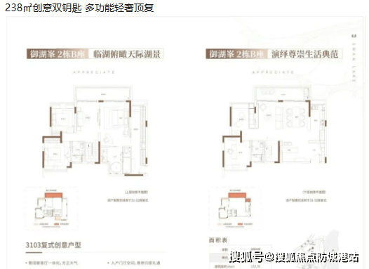 187–238㎡顶复:创意“双钥匙”设计,上下两层可分可合,适合多代同住或资产配置;