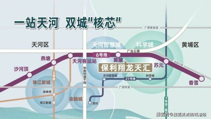 保利翔龙天汇的地理位置十分优越,交通便利。项目距离地铁6号线黄陂站B口仅约400米,步行即可到达。从黄陂站出发,1站可达天河地界——高塘石站,6站可达天河客运站,换乘3号线可直达珠江新城;往东换乘21号线,通达广州全城不在话下。此外,项目周边还有多维立体的高速网,北面紧靠广汕路,通过广园快速、广佛肇高速等“五横三纵”路网,畅达中心城区。自驾出行也非常便捷,从项目出来,前面是广汕公路,可以一路向西,直上天河,正常自驾约20公里能到珠江新城,约17公里到琶洲。无论是公共交通还是自驾出行,保利翔龙天汇都为居民提供了极大的便利性。