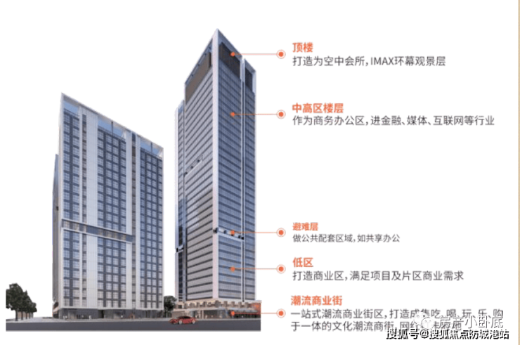 项目由4栋塔楼及商业组成包括写字楼、公寓、商铺等业态