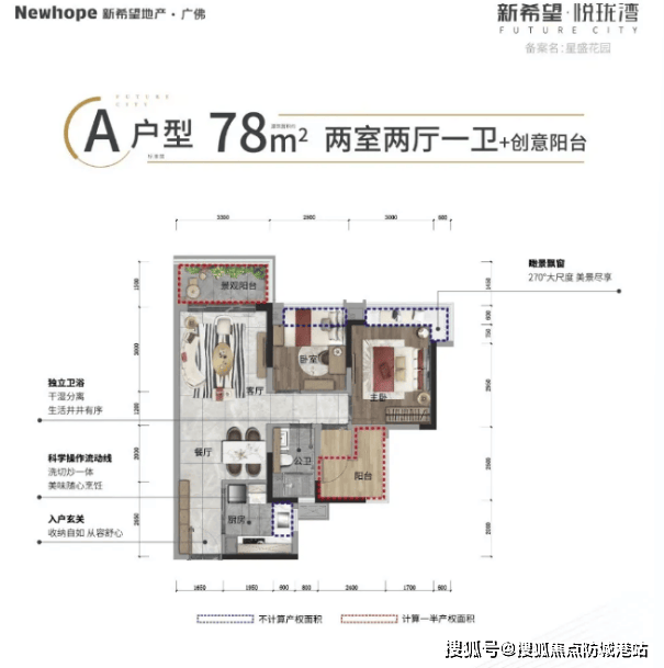 A户型:78㎡三房两厅一卫,片区最低总价,适合首次置业或单身人士,首付30万即可上车,精致实用。