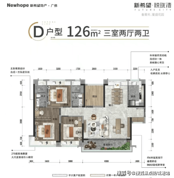 D户型:126㎡四房两厅两卫,采用LDK设计,适合追求高品质生活的改善型家庭,仅限75席,稀缺珍贵。