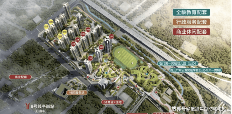 项目自带36班九年一贯制中小学(白云广附云湖实验学校)、18班高标准幼儿园(石门第一实验幼儿园)及托儿所,形成完整0-15岁教育体系。学校2023年9月已开学,师资力量雄厚,提供优质教育保障。