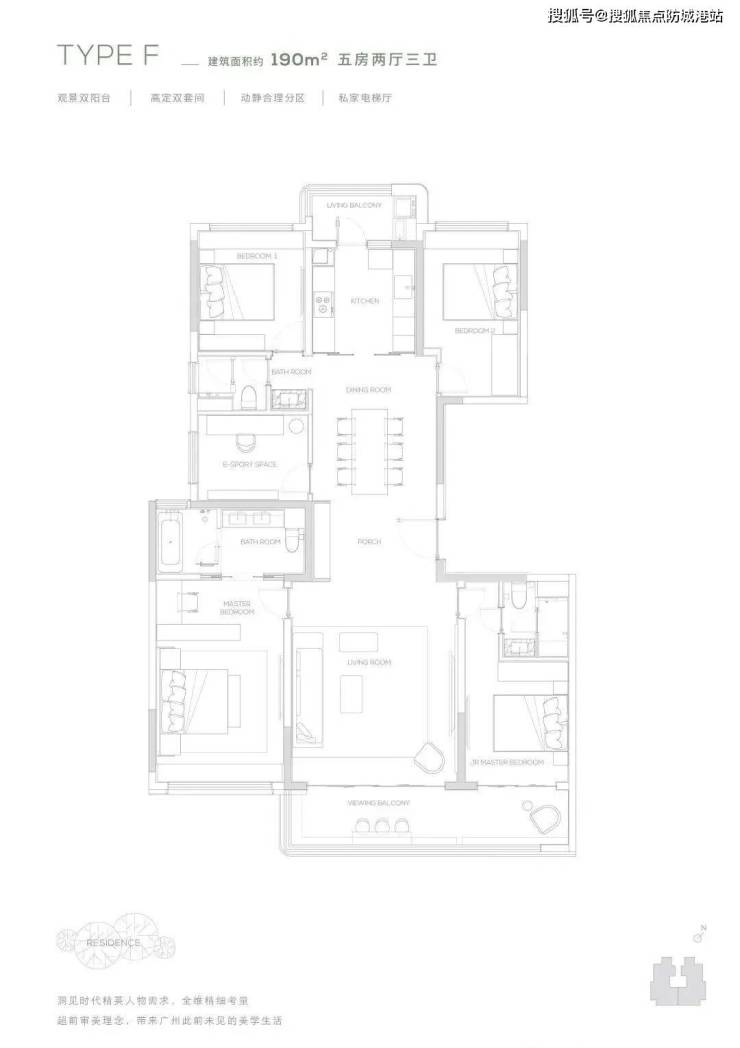 190产品为五房两厅三卫产品,充满了对云端人群生活的独特见解,南向双主卧,中西厨布局,打造纵向超长LDK一体化空间,产品所体现的不只是居住产品,更是特属客群所拥有的生活方式。