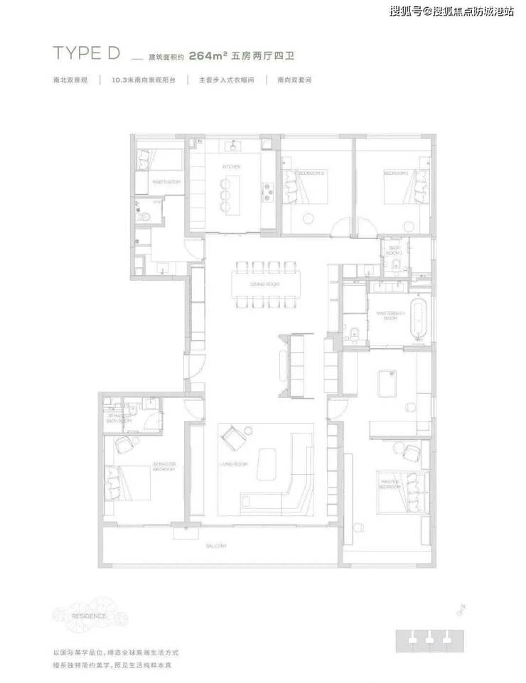 264为五房两厅四卫产品,更细腻的产品设计,超奢华四件套南向主卧,标准南向次主卧, 6.6米巨型方厅,纵向超长LDK一体化空间,专属家政保姆空间,超大容量收纳空间,令居住的尊贵从每处品质细节里流露而出,创造独一无二的奢享体验。