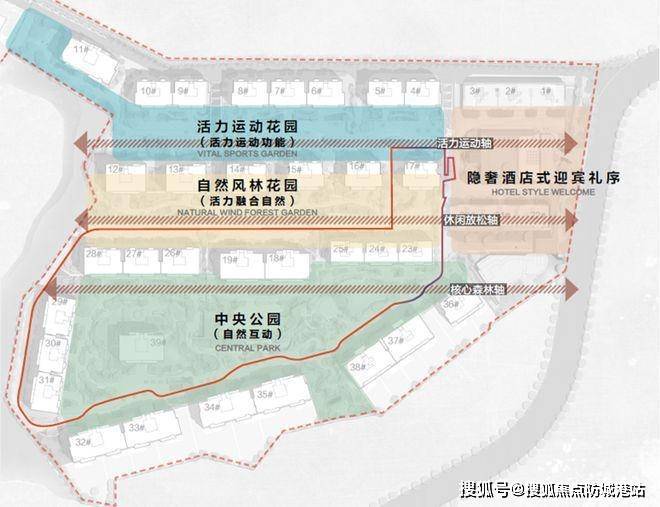 同时,项目充分利用地形高差,通过多台地设计,让园林、建筑、公共空间形成层层递进的关系,而不是简单的平面铺陈。