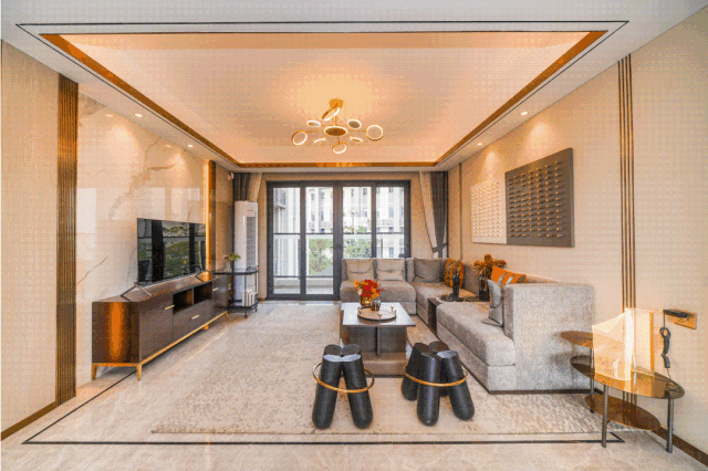洋房楼栋外立面则以浅棕色为主基调,再配合玻璃幕墙,看上去现代感十足的同时,也流露出一股淡雅恬静的气息。