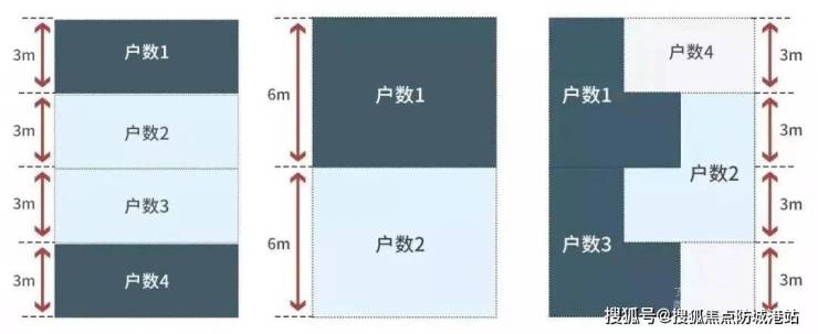 △普通平层洋房、传统真复式和咬合式复式对比图