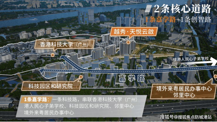 项目毗邻香港科技大学(广州),全球排名前列,是高水平科研教育资源聚集地。社区北侧为港科大,南侧约500米为民心港人子弟学校,同时周边规划有广州大学附属朝阳学校、南华工贸高级技工学校及粤港澳高等教育资源,实现教育与科研联动发展。