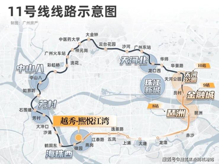 越秀·熙悦江湾的交通网络可谓黄金组合,兼顾轨道交通、高速路网及公交出行。项目距离11号线棣园站约250米,距离11号线与广佛线燕岗站约400米。11号线作为广州首条环城黄金地铁线,串联琶洲、珠江新城、金融城等核心商圈,实现零换乘直达。广佛线则有效链接广州与佛山的优质资源,为居住者提供多城联动的便利生活。