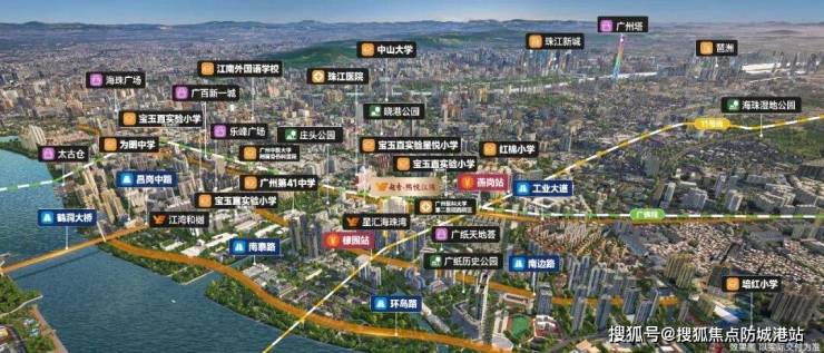 越秀·熙悦江湾坐落于海珠区工业大道中,地处海珠湾核心位置,紧邻珠江后航道,是广州“一江两岸三带”战略的重要节点。项目周边汇聚成熟生活配套,承接十年大城焕新的生活张力,使业主能够在享受都市繁华的同时,感受海珠湾独特的历史氛围。
