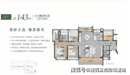 143㎡四房二卫:豪华户型,拥有独立阳台和丰富的储物空间,是追求高品质生活的理想选择。