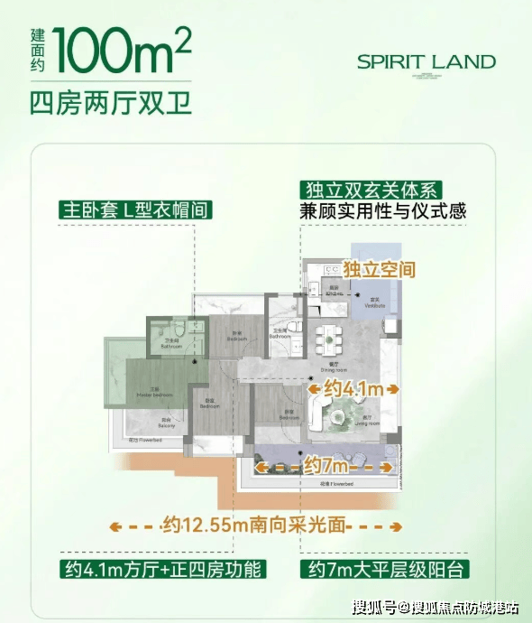 建面约100㎡的四房两厅两卫,则是海珠唯一能在100㎡内做到正四房的户型。LDKG+X一体化的4.1米方正巨厅,搭配约7.2米的大平层级阳台,空间感极佳。独立主卧套设计,保障了主人的私密性;270°转角飘窗,将全景广角视野引入室内。对于二胎家庭或需要书房的多功能家庭来说,这款户型无疑是最佳选择。