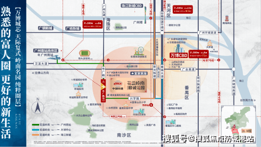 交通枢纽优势:周边交通网络发达,兴学路、市广路、新光快速、广明高速、番禺大道几大主干道近在咫尺。通过新光快速,30 分钟可达珠江新城 CBD,20 分钟可到海珠;南行 45 分钟可至南沙自贸区,向西 15 分钟可到广州南站,往东 20 分钟可到大学城。同时,项目距离地铁 3 号线市桥站及汉溪长隆站约 3km,通过地铁 30 分钟直达珠江新城;距离在建的 22 号线市广路站仅 900 米,该线由中铁建承建,时速 160km/h,一站 3 分钟即达广州南站,依托南站交通网,30 分钟可达白云国际机场,45 分钟可达大湾区所有城市,10 小时内可达国内主要城市,大大提升了出行的便捷性。