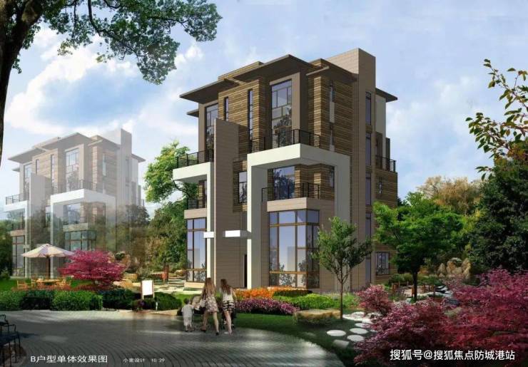 由88套,建筑面积477㎡——677㎡真双拼稀缺美墅组成