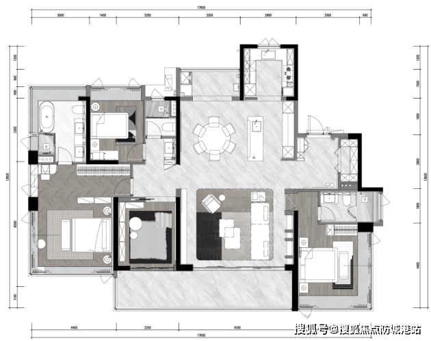 165-186㎡四房:双阳台配置+超大面宽,主卧带独立衣帽间与卫浴。