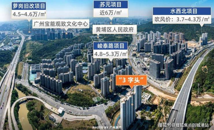 相距不到1公里的水西北项目,吹风价3.7~4.3万/㎡,最早3.2万~3.3万/㎡开卖。