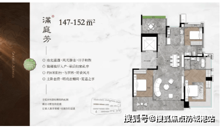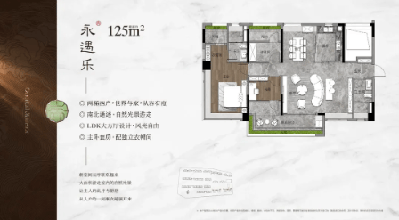 139㎡四房:南北通透,四开间朝南,约45㎡ LDKG大方厅,独立入户玄关,主卧套房设计;