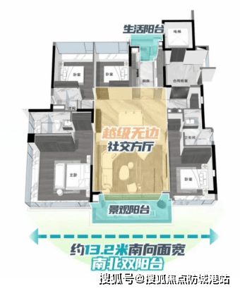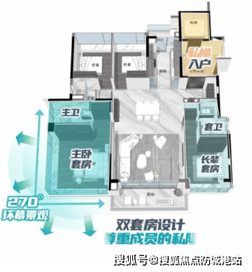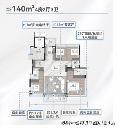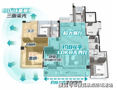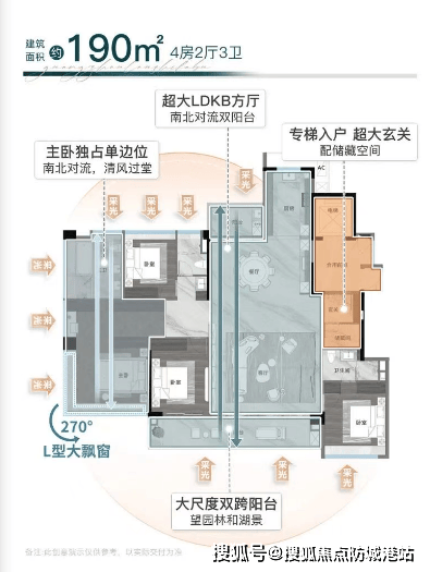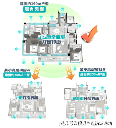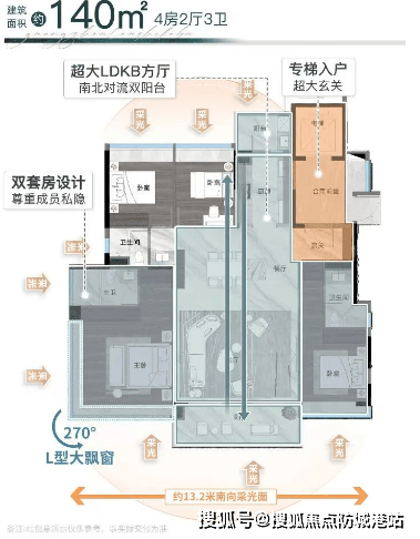 答:项目全部为纯板楼设计,2 梯 2 户实现独梯独户的私密体验。采用建筑新规后设计,拥有超高使用率。LDKG 一体化公区,减少承重墙,空间灵动可改造。窗地比高达 38%,主卧 270° 大飘窗,采光和视野极佳。所有户型均为南北通透,双主套、双阳台设计,居住舒适度高。
