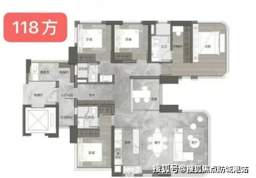 118-121平方米全景舱五空间两厅三卫: