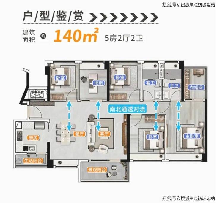 户型设计:主推88-143㎡三至五房,得房率高达85%,南北通透,全屋品牌精装交付;