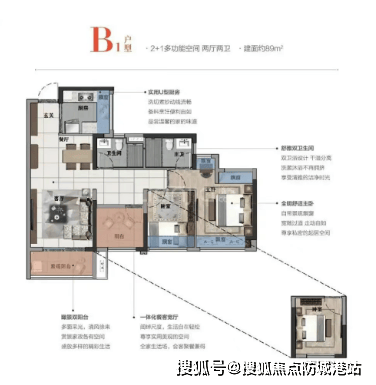 紧接着是主力走量的户型,建筑面积约八十九平方米,设计成了三房两厅两卫。这个户型最大的亮点在于南北对流的双阳台设计。南阳台连接客厅,是休闲观景的好去处;北阳台连接餐厅或厨房,保证了室内的空气流通。动静分区非常合理,休息区和活动区互不干扰,既保证了家庭成员的隐私,又促进了彼此的交流。对于小三口之家或者需要在家办公的年轻夫妇来说,这个户型提供了完美的生活场景。总价控制在非常亲民的范围内,性价比极高,是市场上当之无愧的爆款产品。