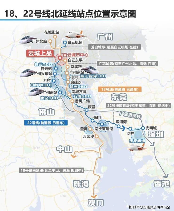 云城上品位于广州地铁18号线与22号线交汇的白云城市中心站位置 同时规划中的34号线与39号线也将在此设站 形成四线交汇的立体交通枢纽 通过160公里时速的高速地铁 三站可达天河北 四站直抵珠江新城 高速轨道系统使得项目具备全城通达与湾区互联优势 广州地铁地产充分利用合建优势 打造业主专属归家通道 业主可从地铁站厅直接步入社区地库 实现真正意义上的无缝衔接出行 无需风雨通勤 节省出行时间 提升生活效率 未来随着地铁网络的全面开通 白云城市中心将成为连接广州与大湾区的重要门户节点