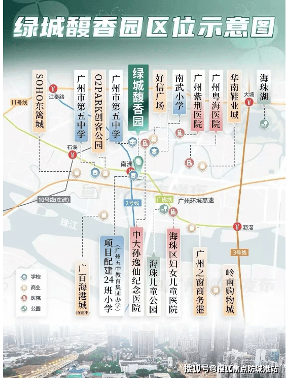 外部配套方面,项目 3 公里内聚集百万方商业体 ——1.1 公里至海珠城城光荟、广百海港城,1.7 公里达广州之窗商务港,2.5 公里至海珠万达广场,加上自带的 1800㎡风情商业,购物、娱乐需求一站式满足。医疗资源同样优质,750 米可达三甲医院中山大学孙逸仙纪念医院,1.5 公里内有海珠区妇儿医院,为健康保驾护航。生态环境上,项目背靠河涌打造滨河公园,周边海珠儿童公园、海珠湖、海珠国家湿地环绕,形成天然 “生态氧吧”,平衡城央繁华与自然静谧。