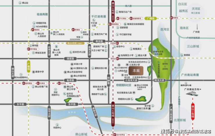 世茂望德公馆位于佛山市区的核心地带,临近三龙湾小学和半月岛湿地公园,距离现有的地铁3号线约3公里,在建中的4号线也大约在2.9公里外,虽然公共交通相对不太方便,但自驾出行非常便捷。周边公交站覆盖范围广,步行约500米即可到达。