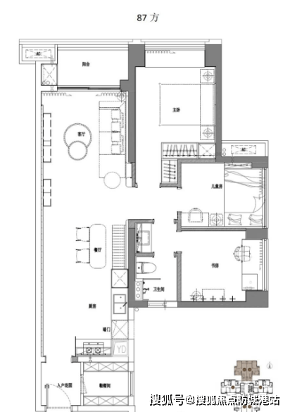 87平方米户型:该户型设计紧凑,北向布局,开间3.4米,配备一个卫生间,实际使用面积较小,适合预算有限的家庭。
