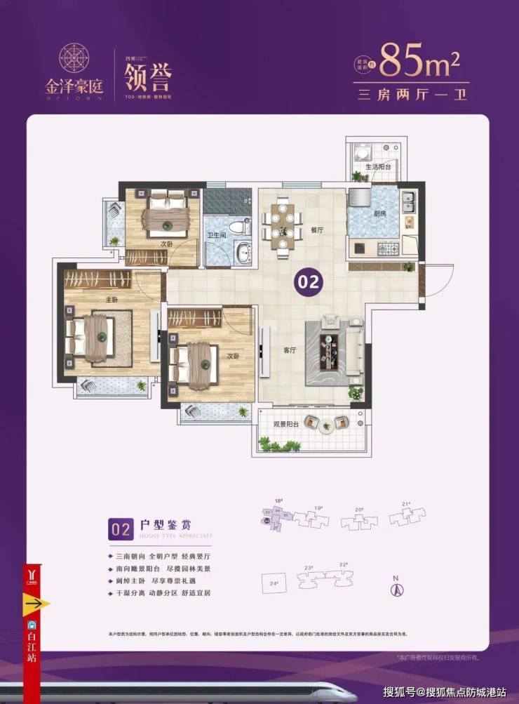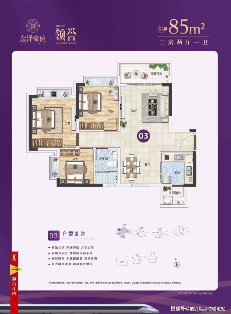 85—121平米3-4房:包括三房两厅一卫、三房两厅两卫及四房两厅两卫户型,适合不同阶段的家庭居住需求。所有户型设计合理,动静分区明确,采光通风良好,为住户提供温馨舒适的居住体验。