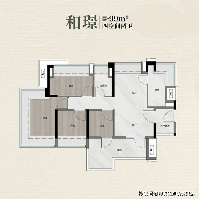 总价约350万起的99㎡四房,采用客餐厅阳台一体化布局,空间通透开阔。户型最大的优势是空间可灵活调整,能够根据家庭成长需求在三卧和四卧之间切换。新婚夫妻可以将多余房间作为书房或衣帽间,有了孩子后再改造成儿童房,真正实现“一步到位”的置业需求。