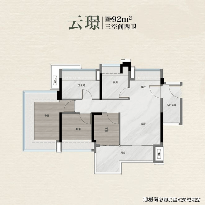 总价约320万起的92㎡四房,在同面积段产品中极具竞争力。户型采用四开间朝南+南北对流的设计,通风采光效果极佳。L型阳台面积近10㎡,空间灵活度很高,可以根据家庭需求改造为茶室、书房或儿童游乐区,实现“一房多用”。对于需要多一间房间的刚需家庭来说,这款户型无疑是性价比之选。