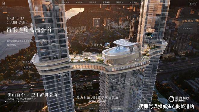 休闲:在 27 层打造了百米连廊高端游艇会所,内有健身、书吧、空中展厅、空中无边泳池、屋顶花园等设施。