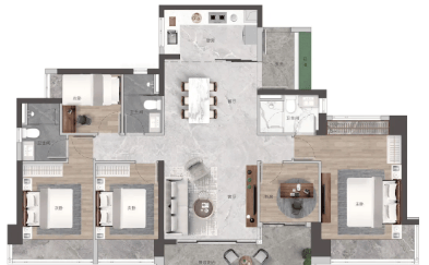 143㎡五房两厅三卫:3.3 米墅级层高,五开间全朝南,6.3 米巨幕山景阳台,双主套三卫设计,带花池入户花园,实用率 97%;