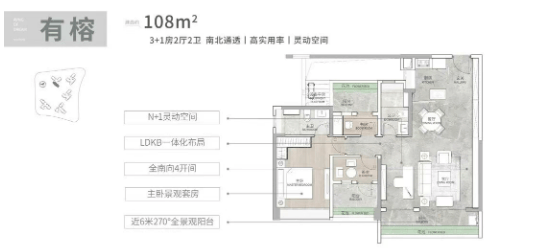 【户型一:建面108平3+1房2厅2卫】