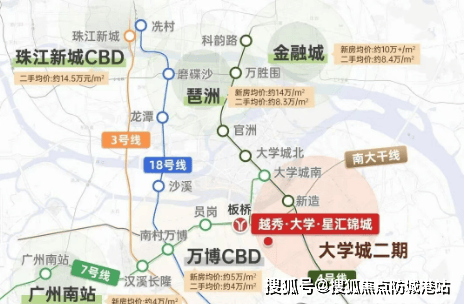 越秀大学星汇锦城地处番禺区南村板块,周边规划有多个科技创新园区,未来发展潜力巨大。此外,该区域还靠近万博商圈和琶洲商务区,未来有望成为广州南部的重要发展节点之一。