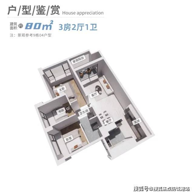 建面约80㎡北向三房,约3.5-3.6万/平,性价比最高;