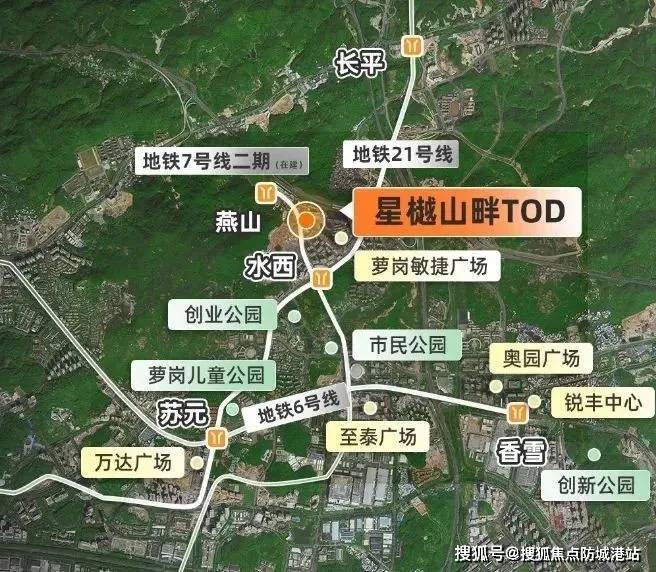 位于7号线二期燕山站上盖的星樾山畔TOD,自然是最大受益者。地铁站就在家楼下,出门下电梯直达地铁站台(部分楼栋),一气呵成。