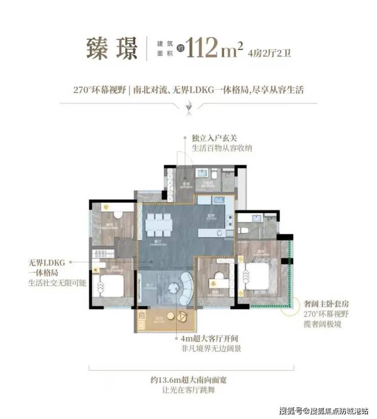 4房2厅2卫:270°环幕视野,南北对流,无界LDKG一体格局,尽享从容生活。