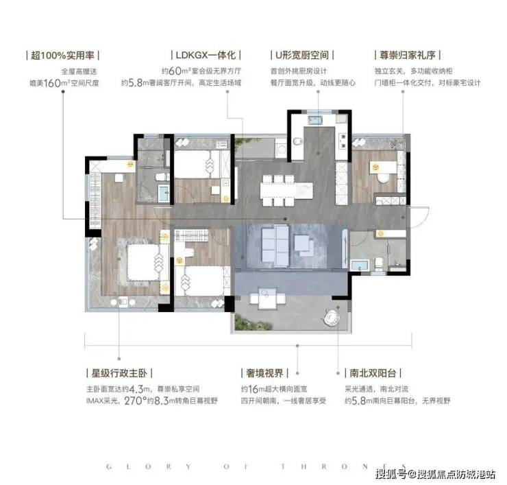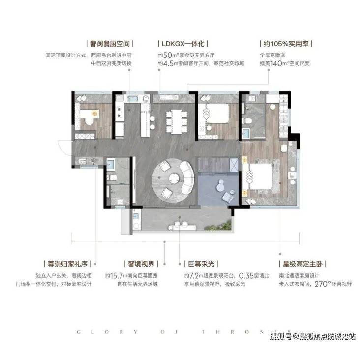 超大LDKG全方厅:独立双厨系统,中央社交非凡格局。