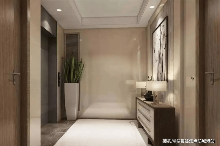 首层大堂:6米挑高,石材铺装,配备24小时前台和快递柜;